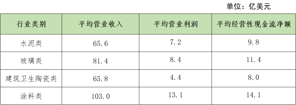 水泥类公司平均营业收入同比下降12.2%,主要是由于多数中国(含港澳台)水泥类上榜公司营业收入下滑;盈利水平有所改善,平均营业利润同比增长4.3%,主要得益于印度市场强劲的增长以及欧洲水泥类公司盈利能力的提升。涂料类公司的营业收入、营业利润和经营性现金流净额均值都表现优异。上榜公司在资金运转方面表现出反弹趋势,各类公司的平均经营性现金流净额均有不同幅度的增加。全球建筑行业目前正处在一个复杂多变的环境,建筑材料需求总量呈下降趋势,上榜公司合计营业收入同比减少8.3%。其中,上榜的49家水泥类公司中,21家营业收入出现下滑,平均营业收入同比减少12.2%;上榜的14家玻璃类公司中,营业收入为负增长的有6家,平均营业收入同比减少6.3%;上榜的6家建筑卫生陶瓷类公司营业收入均出现下降,平均营业收入同比减少3.4%。在复杂多变的宏观经济环境下,上榜欧洲公司营业收入增长普遍放缓,但盈利水平表现出强劲的增长势头,这主要得益于对成本的有效控制、成功的产品定价和增长投资策略。上榜公司中来自欧洲地区的有25家,其中21家公司的营业利润都有不同幅度的提升,平均营业利润同比增加13.9%,营业利润增长率普遍高于营业收入增长率。面对激烈的市场竞争,建筑材料公司进一步优化业务组合和市场布局。圣戈班股份公司(法国)收购Fosroc公司拓展中东和印度建筑化学品市场,完成其建筑化学品布局全球市场的战略。AGC株式会社(日本)不断优化其业务组合,停止了关西的LCD液晶玻璃基板产品的生产,退出利润微薄的小型电视玻璃基板业务,专注于盈利预期较高的大型面板玻璃基板业务,同时扩大氟基电解质聚合物和EUV曝光用光掩模坯料的产量。天山材料股份有限公司和中国中材国际工程股份有限公司,共同增资国际化业务平台,加速布局全球市场。台湾水泥股份有限公司净利润中大约45%来自欧洲低碳水泥业务的贡献,2023年11月宣布将投入60亿人民币再次扩大欧亚非低碳水泥市场。为了更好地应对气候变化,践行社会责任,全球建筑材料公司纷纷加快绿色低碳转型,减碳路径多元化。豪瑞有限公司(瑞士)加大建筑垃圾回收利用业务的投资,在2023年完成4项该领域的收购,提高资源综合利用效率,减少对自然资源的消耗。海德堡材料股份公司(德国)加快碳捕集设施的建设,布局了14个CCUS项目。圣戈班股份公司(法国)积极使用清洁能源替代化石能源,在挪威启动了全球首个使用百分百可再生电力生产石膏板的项目,在德国使用30%氢含量的燃料进行平板玻璃试生产。在国际国内形势复杂严峻的背景下,中国建筑材料企业需对标国际先进建材企业,加大科技创新投入,加快制造业与数字经济、人工智能等新一代信息技术的深度融合,大力发展新质生产力,积极推进绿色低碳转型,加快构建现代化建材产业体系,践行“宜业尚品、造福人类”行业发展目标,努力实现绿色低碳安全高质量发展。